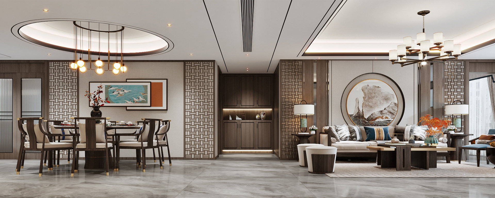 新中式風(fēng)格是中式元素與現(xiàn)代材質(zhì)的巧妙兼柔的布局風(fēng)格,它同時明清家具、窗欞、布藝床品相互輝映,經(jīng)典地再現(xiàn)了移步變景的精妙小品。